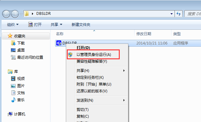 解决方案:点此下载DBSLDR工具,下载完后解压出来,右键点击DBSLDR.exe,选择‘以管理员身份运行‘(图一),然后点击‘安装’,安装完成后重启系统(图二)。