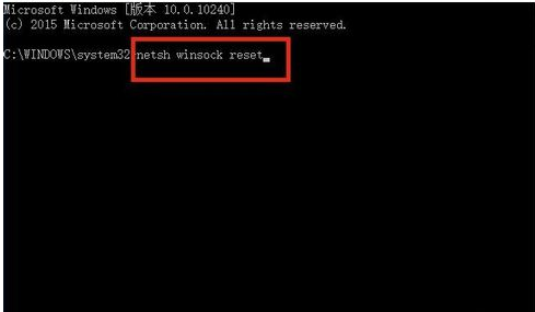 5、然后输入 : netsh winsock reset 按enter键