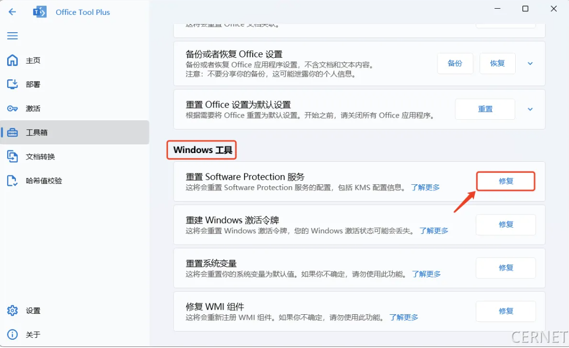 4.修复完成后,重启电脑,然后再使用激活客户端进行激活