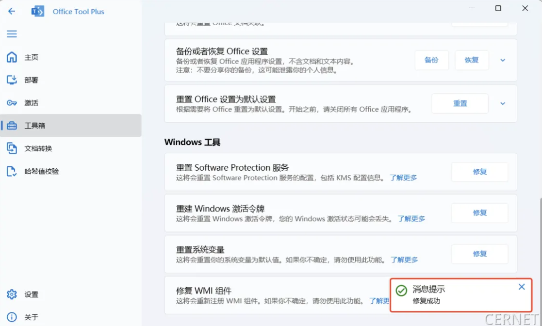 5.修复完成后,会有弹窗提示,然后使用激活客户端重新激活