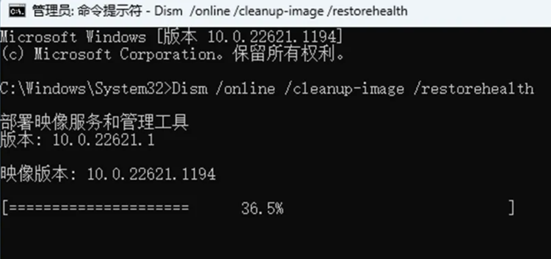 等待进度条跑满,此命令在 Windows 组件库 (C:\Windows\winsx) 中找到并替换任何损坏或丢失的文件。