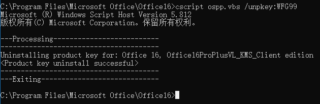 64位系统office输入命令: cd C:\Program Files\Microsoft Office\Office16